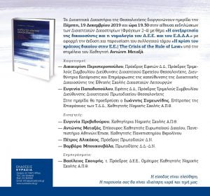 Παρουσίαση του νέου συλλογικού τόμου με επιμελητή τον Καθηγητή Α. Μεταξά «Η κρίση του Κράτους Δικαίου στην ΕΕ» στην Θεσσαλονίκη (19 Δεκεμβρίου 2019)